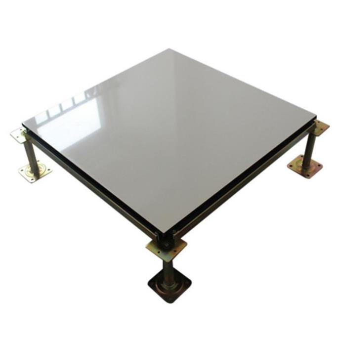 防静电地板系统通常由地板、横梁、支架、螺丝、贴面等主要部位组成。横梁和自身高度可调的支架用螺钉连结成稳固的下部支承系统,地板镶嵌入横梁围成的方格内。表面贴面有:PVC塑胶贴面、HPL(三聚氰胺)贴面、陶瓷面等。相关辅助配件还有螺丝钉、吸盘、走线盒等。